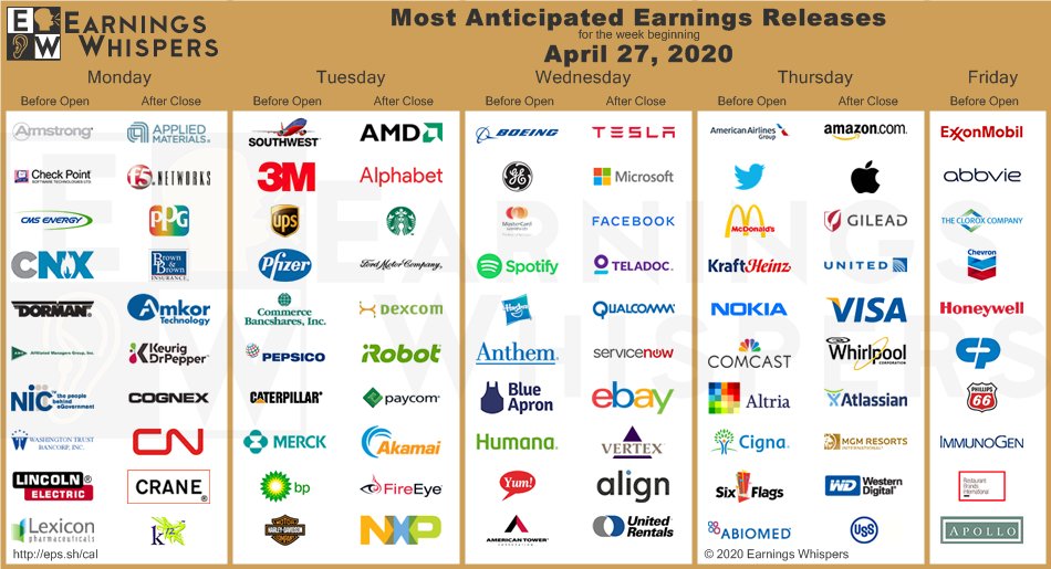 Earnings Whispers On Twitter Earnings For The Week Https T Co Loboe0dgsr Aapl Amzn Msft Amd Ups Fb Shop Ba Has Pfe Smpl Mmm Twlo Ge Fsly Pins Nok Twtr Mrna Chgg Etsy Sap Cat
